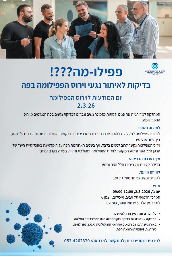 יום שני, 2.3, בין 9:00-12:00 – יום בדיקות לאיתור נגעים בפה של וירוס הפפילומה