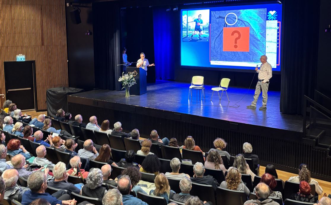 פרופ׳ שמואל בנאי, מנהל המערך הקרדיולוגי שיתף את הקהל בפרט המדהים: "בישראל מתים כ-12,000 אנשים בשנה ממחלות לב". לדבריו: "זה מספר שמחייב אותנו לפעול. האמת היא שחלק גדול מהם היו יכולים להינצל. אנחנו רגילים לחשוב על מחלות לב כמשהו שקורה לאנשים מבוגרים או לאנשים שלא שומרים על עצמם, אבל זו טעות מסוכנת. אנחנו רואים בביה״ח צעירים שרצים מרתונים, אוכלים נכון, מרגישים מצוין ויש להם גורמי סיכון שהם לא מודעים אליהם בכלל. לחץ דם גבוה, כולסטרול, נטייה גנטית – אלה לא דברים שמרגישים. ולכן המחויבות שלנו היא לא להמתין שהמטופל יגיע אלינו, אלא לצאת אליו, לחנך ולהעביר את המידע שעשוי להציל את חייו".
