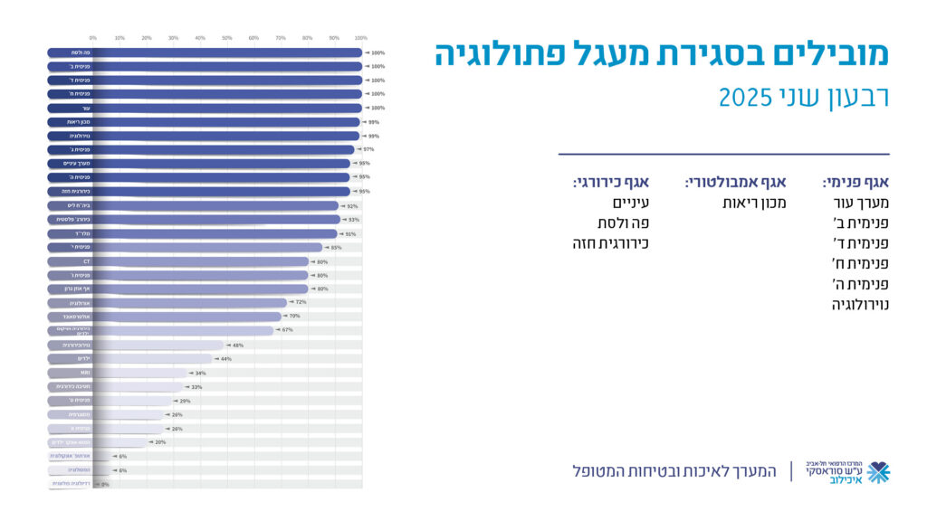 להלן שעור הביצוע של האגפים והמחלקות השונות. ניתן לצפות בנתונים במערכת סגירת מעגל למעקב אחר תוצאות פתולוגיה. המחלקות המובילות ברבעון